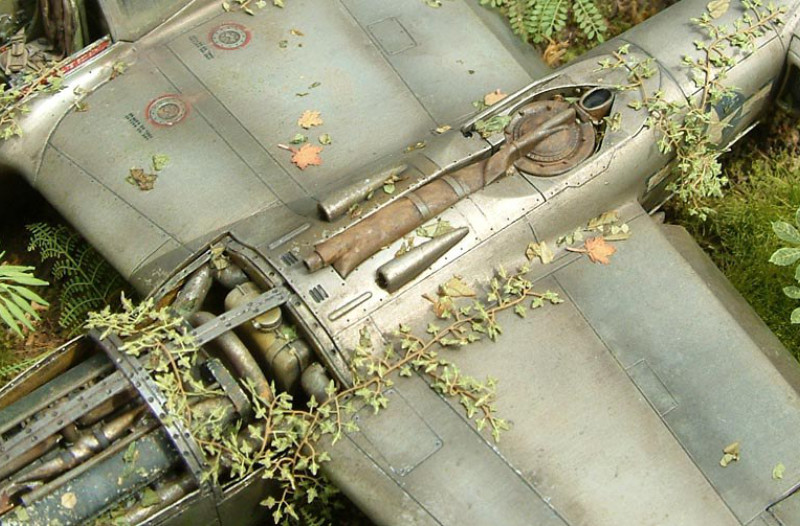 Die Dioramenidee: eine notgelandete P-38 (Bauchlandung mit eingezogenem Fahrwerk) wird im Lauf der Jahre vom Dschungel in Besitz genommen. Die