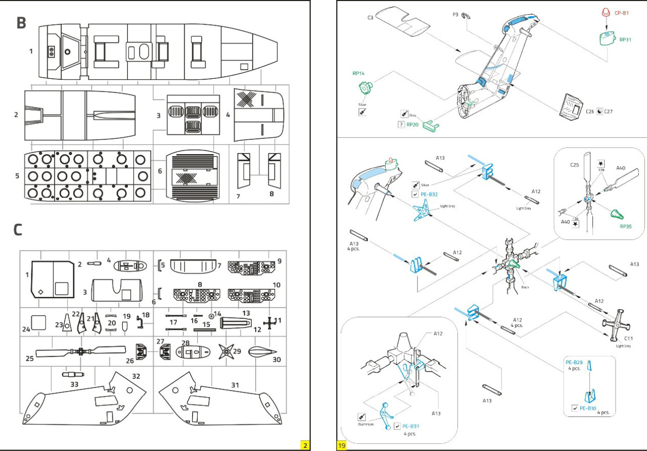 alles wird mit kleinsten Resin- und Fotoätzteilen aufgewertet. Rotorkopf,