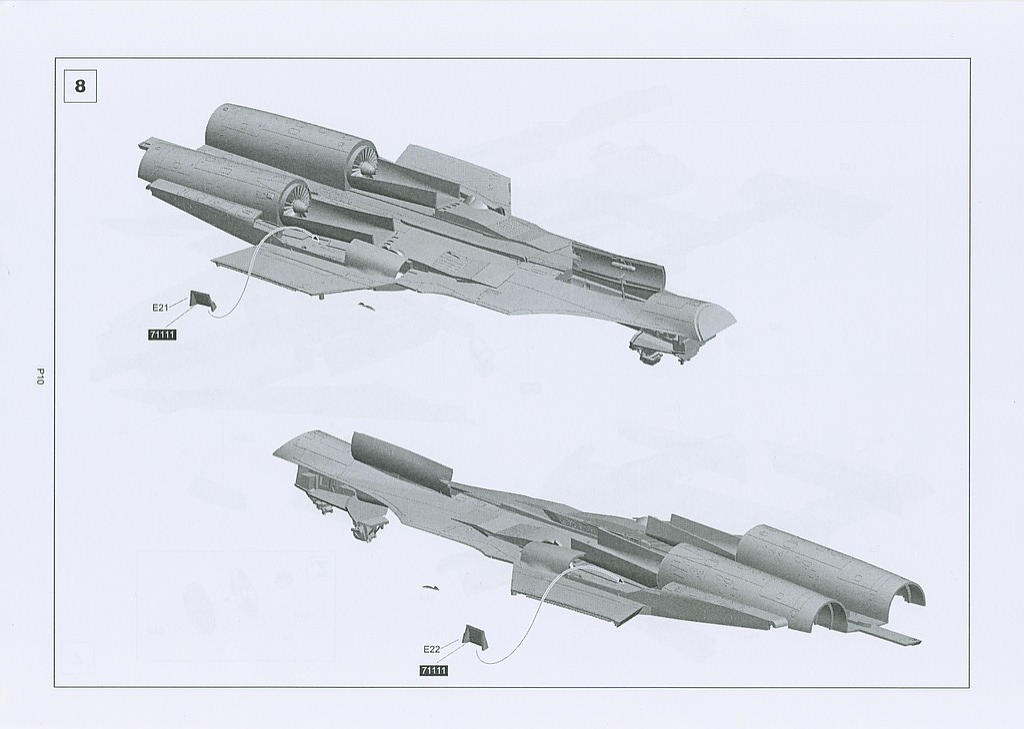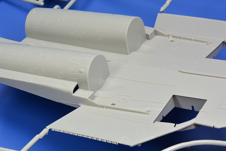 dünne und filigrane Fotoätzteilebogen wie man an den Schubdüsen (Schachtelseite,