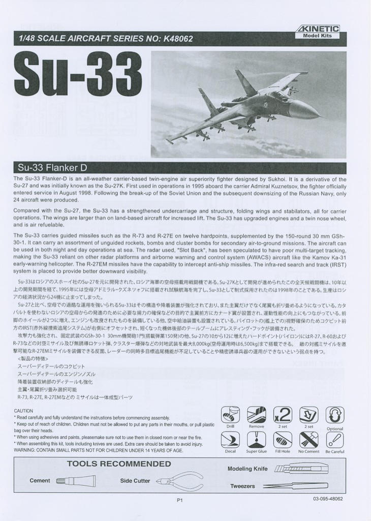 tel der neuen Su-33. Beim ersten Öffnen des praktischen Stülpkartons findet