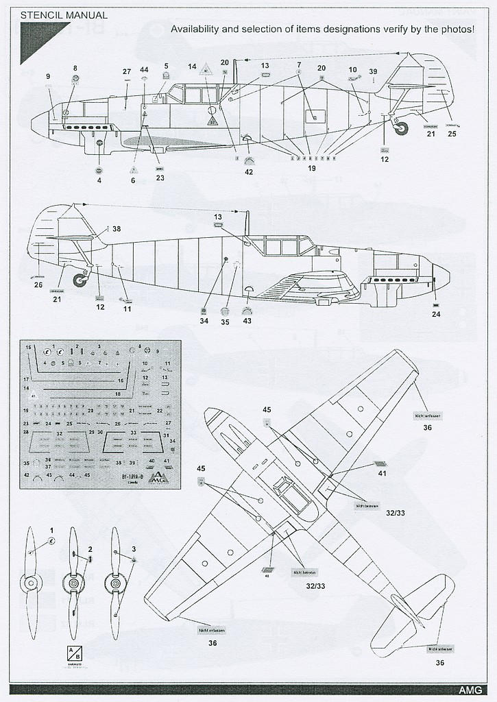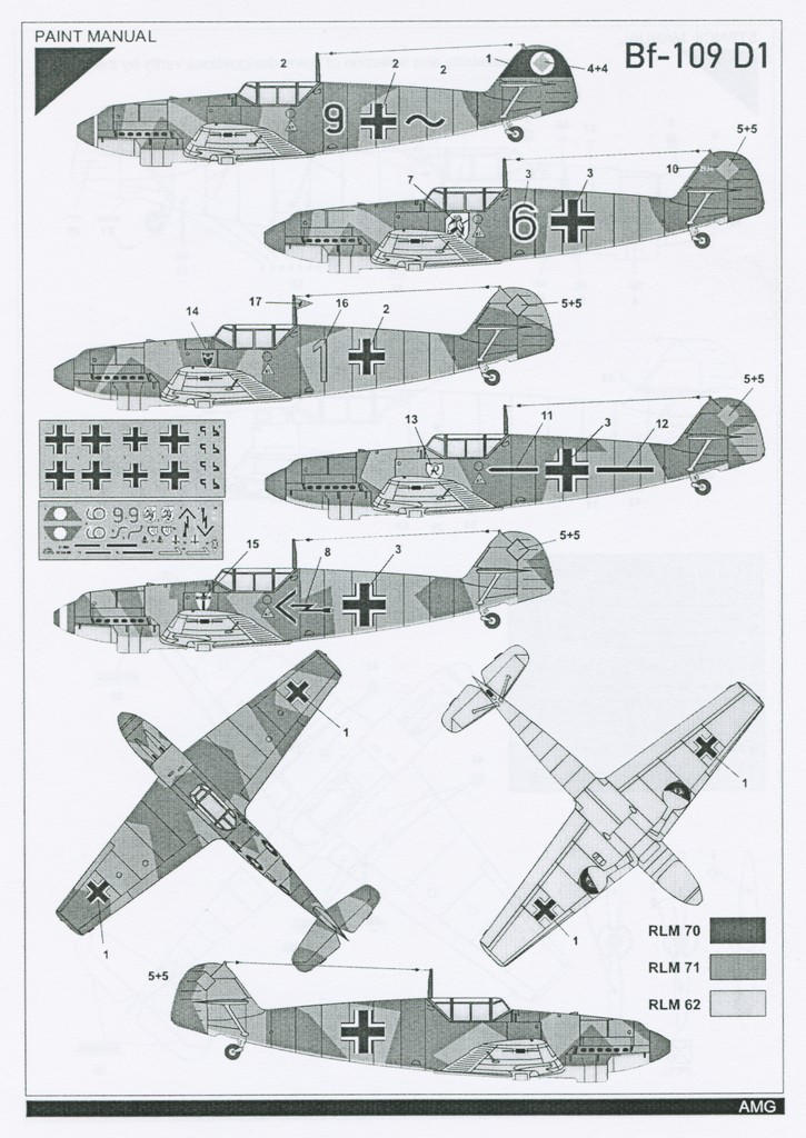 Die Bauanleitung ist einfach und zweckmäßig gehalten, sie dient universell für alle Bausätze dieser Serie, von Bf 109A-D. Auf die jeweiligen