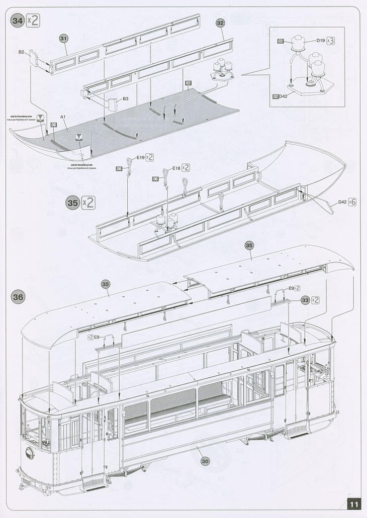 Der Triebwagen 641 welcher dem Modellbauhersteller MiniArt als Vorbild diente ist einer der Serie 601-674 der Nürnberger Straßenbahn, gefertigt von MAN/
