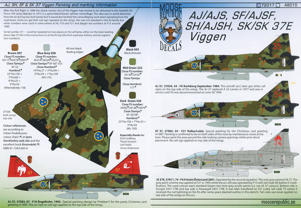 chen Decalbögen zur Saab 37 Viggen. Die Decalschmiede um den